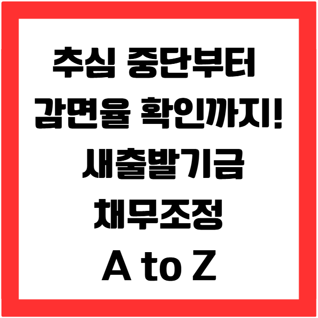 ✅ 추심 중단 즉시, ✅ 감면율 확인, ✅ 상환 계획 수립까지 모든 것을 한 번에 정리한 **새출발기금 채무조정 A to Z** 콘텐츠입니다!