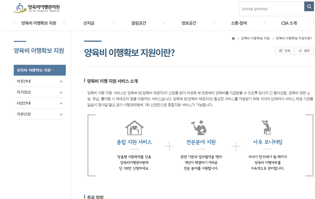 - 양육비 이행지원: 판결·조정서에 따른 양육비 집행 대행