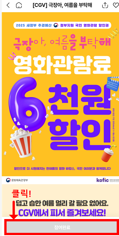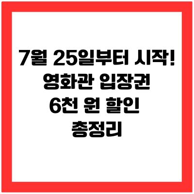 2025년 7월 25일부터 정부가 전국 영화관에서 사용 가능한 6천 원 할인권을 무려 450만 장 배포합니다!