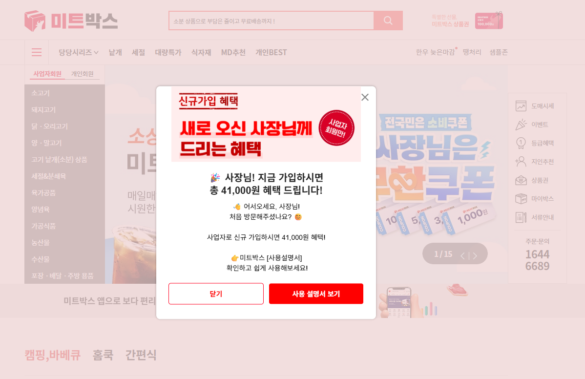 - meatbox.co.kr 접속 → 사업자 회원가입