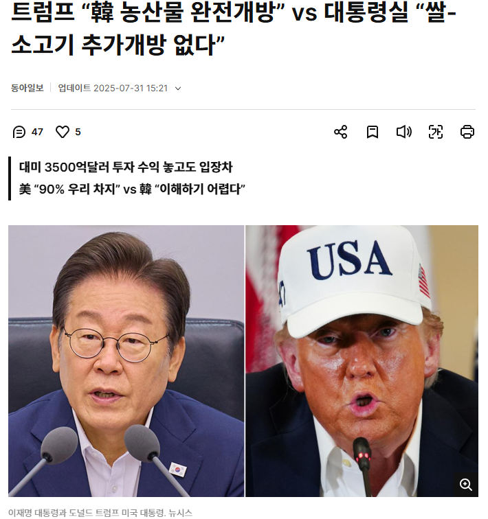 반면 한국 정부는 “쌀·소고기 등은 추가 개방 없다”고 반박했습니다. 👉 정부 입장 보기