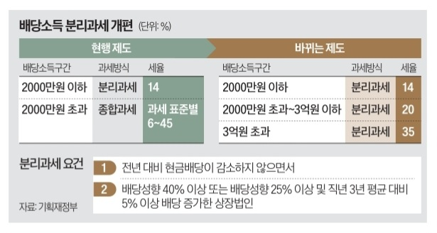 - 기존 종합과세 대신, 배당만 별도로 세금 부과(분리과세)