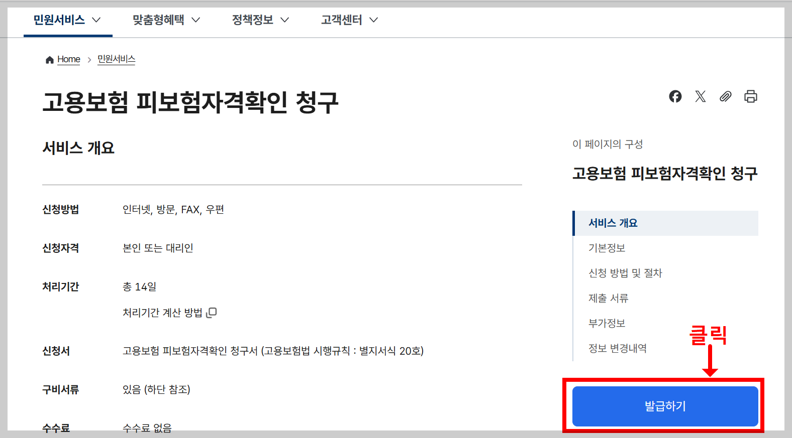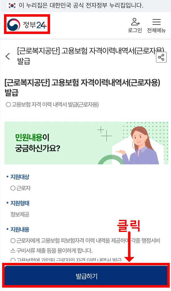 - 검색창에 고용보험 가입이력 또는 자격이력 내역서 입력