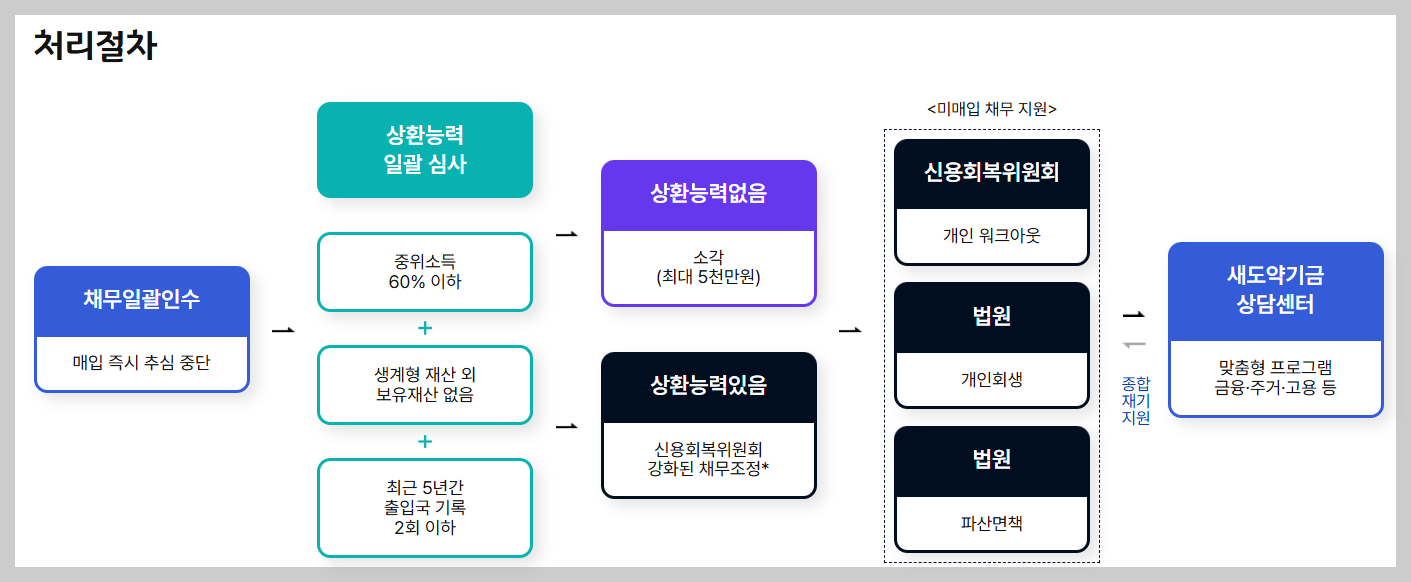 - 7년 이상 연체 + 5천만 원 이하 채무가 우선 매입 대상